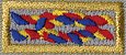 Description: Blue/red/yellow on blue/red/yellow knot on silver background with gold border. Award Requirements: